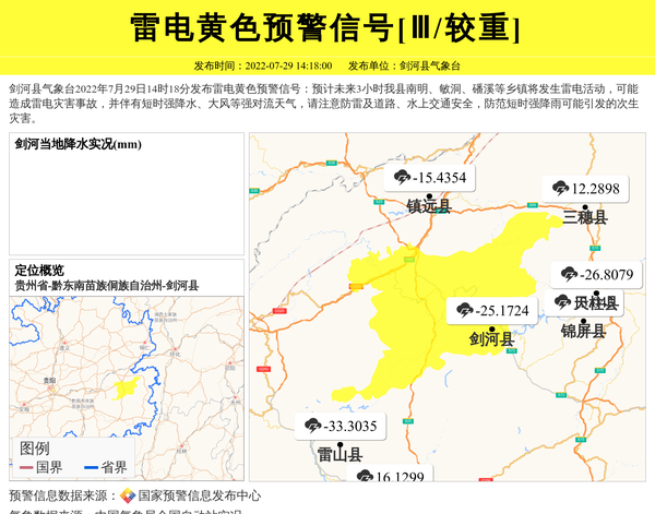 剑河县气象台发布雷电黄色预警信号[Ⅲ/较重] 相关文章