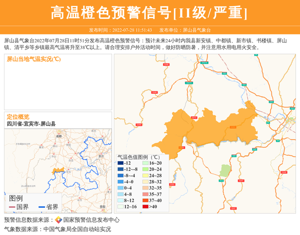 屏山县气象台发布高温橙色预警信号[II级/严重]
