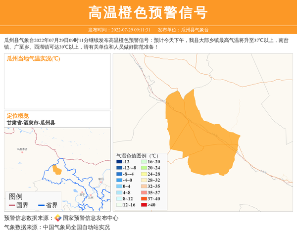 瓜州县气象台继续发布高温橙色预警信号 相关文章