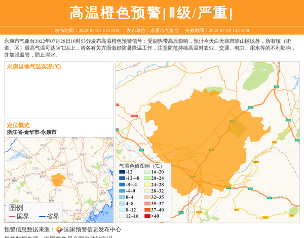 永康市气象台发布高温橙色预警[Ⅱ级/严重] 相关文章