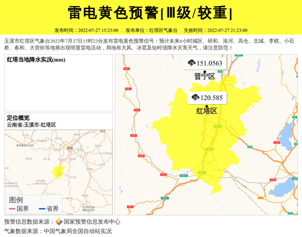 红塔区气象台发布雷电黄色预警[Ⅲ级/较重] 相关文章