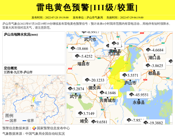 庐山市气象台更新雷电黄色预警[III级/较重] 相关文章