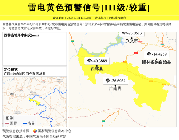 西林县气象台发布雷电黄色预警信号[III级/较重] 相关文章