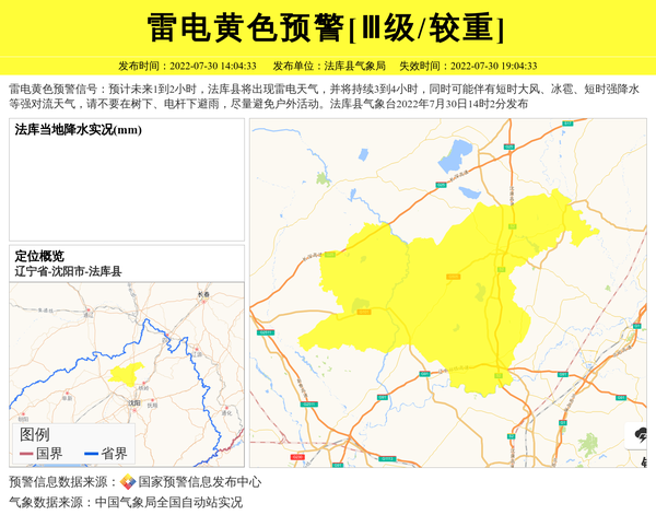 法库县气象局发布雷电黄色预警[Ⅲ级/较重] 相关文章