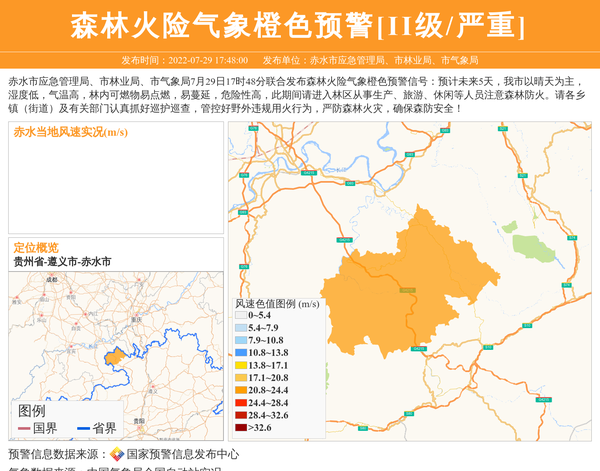 赤水市应急管理局、市林业局、市气象局发布森林火险气象橙色预警[II级/严重]
