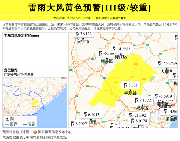 丰顺县气象台发布雷雨大风黄色预警[III级/较重] 相关文章