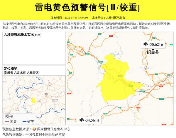 六枝特区气象台发布雷电黄色预警信号[Ⅲ/较重] 相关文章