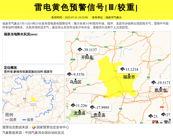 福泉市气象台发布雷电黄色预警信号[Ⅲ/较重] 相关文章
