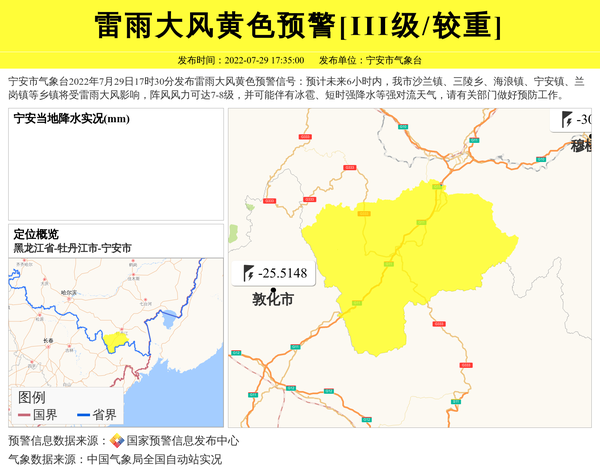 宁安市气象台发布雷雨大风黄色预警[III级/较重] 相关文章