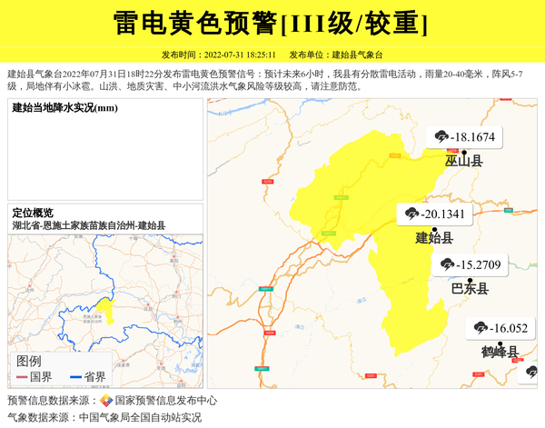 建始县气象台发布雷电黄色预警[III级/较重] 相关文章