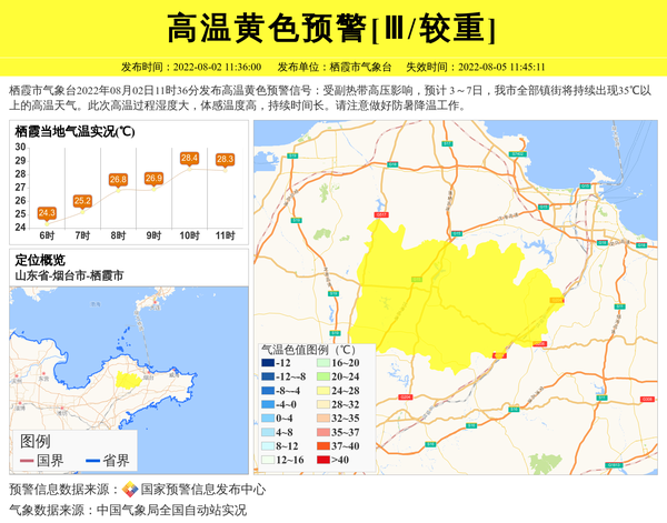 栖霞市气象台发布高温黄色预警[Ⅲ/较重]