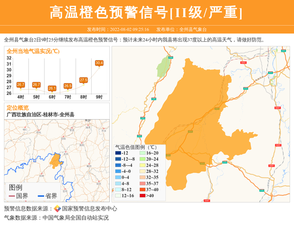 全州县气象台更新高温橙色预警信号[II级/严重] 相关文章