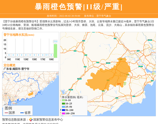 普宁市气象台发布暴雨橙色预警[II级/严重] 相关文章