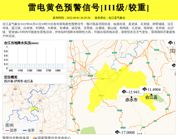 合江县气象台发布雷电黄色预警信号[III级/较重] 相关文章