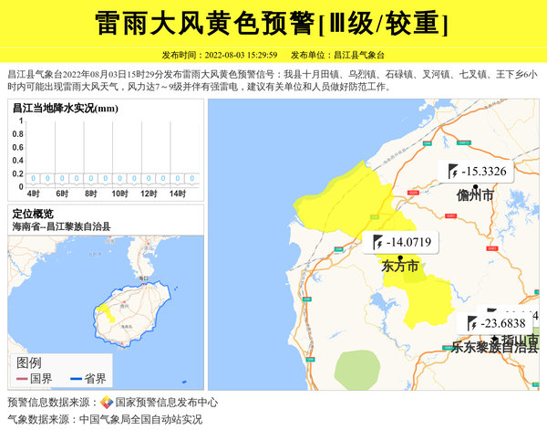 昌江县气象台发布雷雨大风黄色预警[Ⅲ级/较重] 相关文章