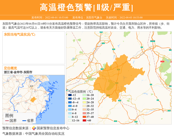 东阳市气象台发布高温橙色预警[Ⅱ级/严重] 相关文章