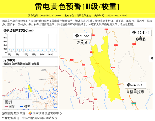 德钦县气象台发布雷电黄色预警[Ⅲ级/较重] 相关文章