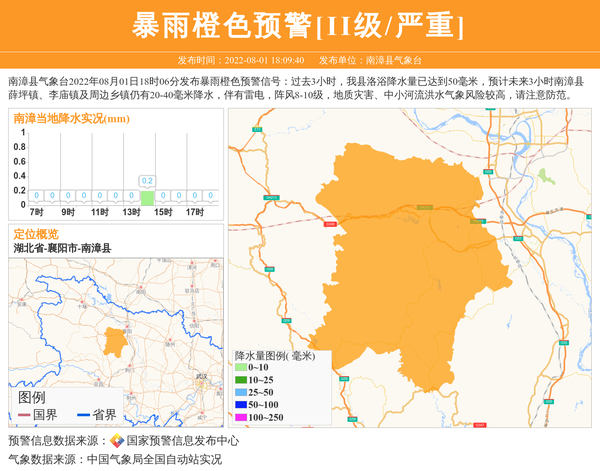 南漳县气象台发布暴雨橙色预警[II级/严重] 相关文章
