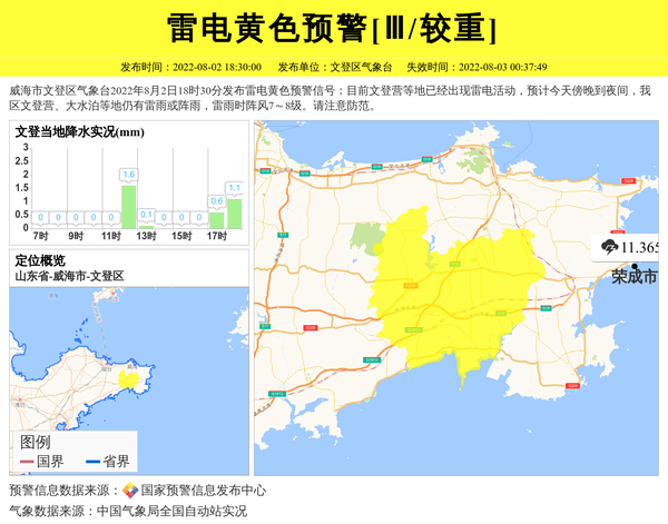 文登区气象台发布雷电黄色预警[Ⅲ/较重]