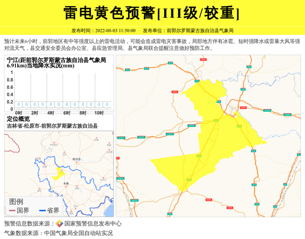 前郭尔罗斯蒙古族自治县气象局发布雷电黄色预警[III级/较重] 相关文章