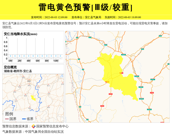 安仁县气象局发布雷电黄色预警[Ⅲ级/较重] 相关文章