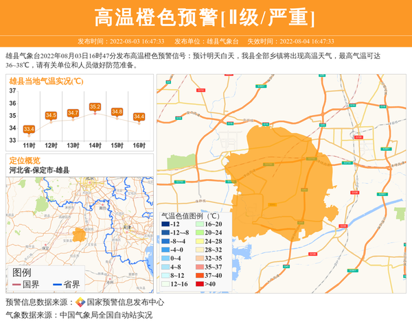 雄县气象台发布高温橙色预警[Ⅱ级/严重]