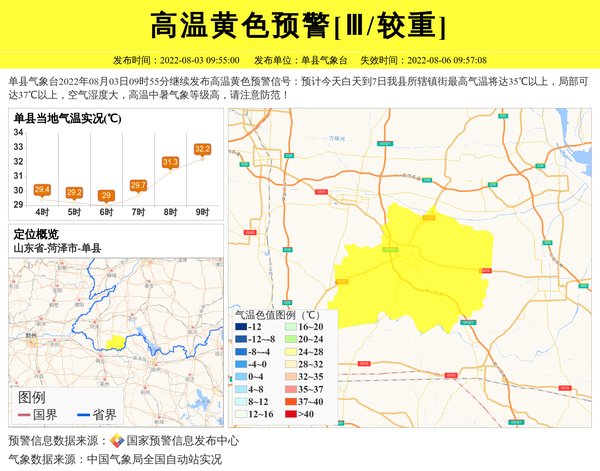 单县气象台继续发布高温黄色预警[Ⅲ/较重] 相关文章
