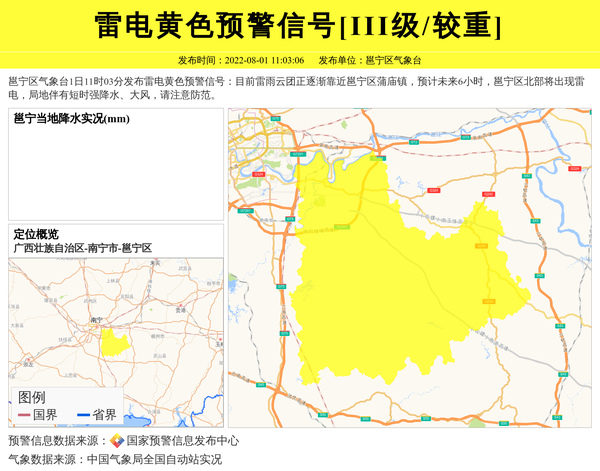 邕宁区气象台发布雷电黄色预警信号[III级/较重] 相关文章
