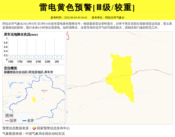 阿拉尔市气象台发布雷电黄色预警[Ⅲ级/较重] 相关文章