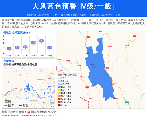 德钦县气象台发布大风蓝色预警[Ⅳ级/一般] 相关文章