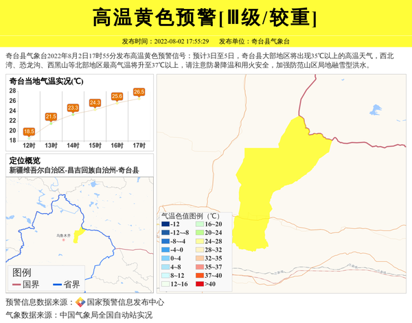 奇台县气象台发布高温黄色预警[Ⅲ级/较重] 相关文章