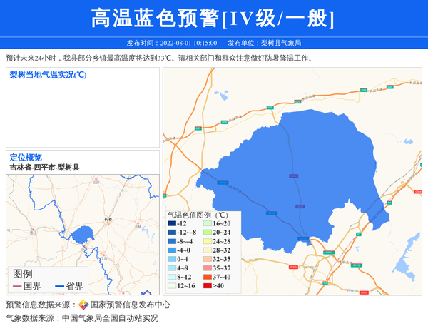 梨树县气象局发布高温蓝色预警[IV级/一般]