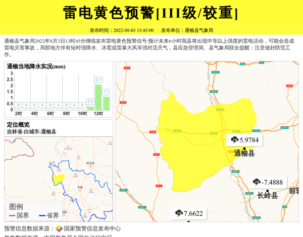 通榆县气象局发布雷电黄色预警[III级/较重] 相关文章