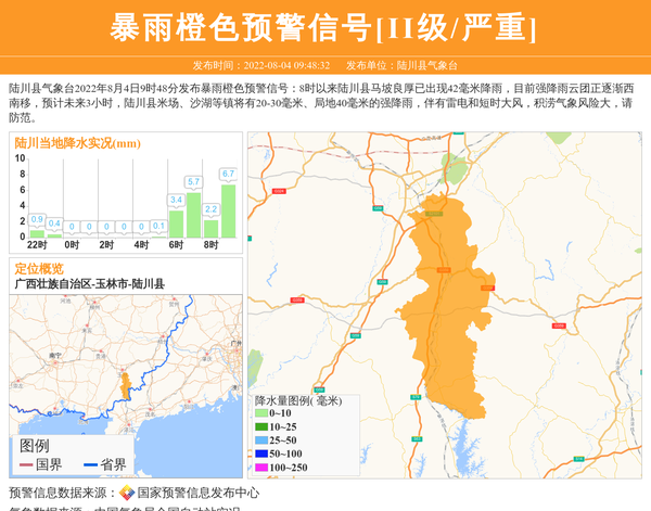 陆川县气象台发布暴雨橙色预警信号[II级/严重] 相关文章