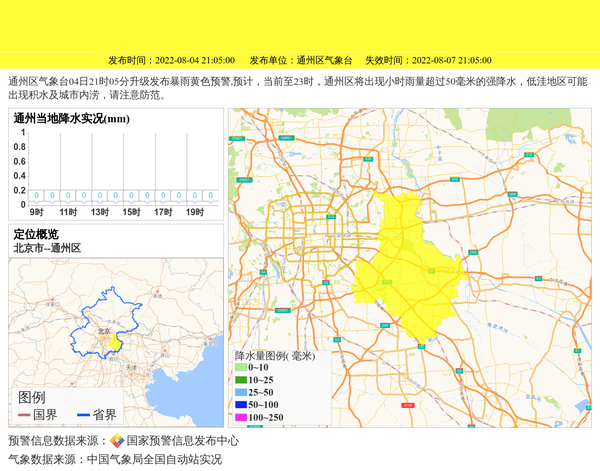 通州区气象台升级发布暴雨黄色预警[III/较重] 相关文章