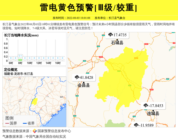 长汀县气象台发布雷电黄色预警[Ⅲ级/较重]