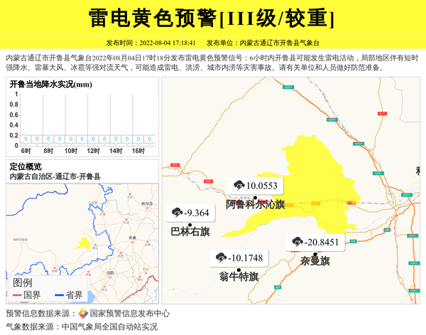 内蒙古通辽市开鲁县气象台发布雷电黄色预警[III级/较重] 相关文章