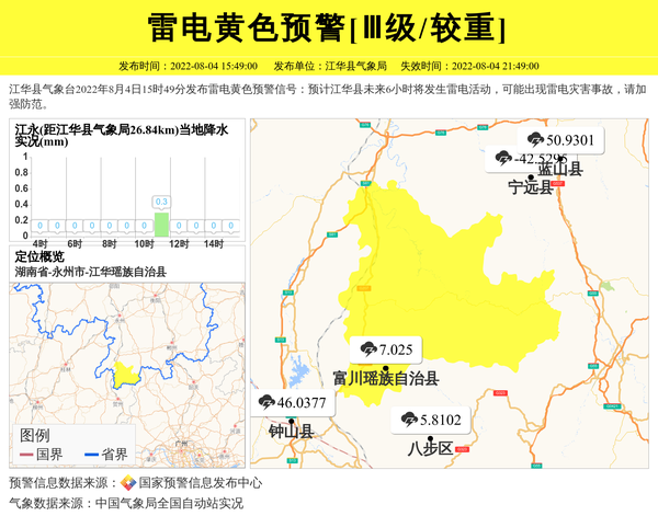 江华县气象局发布雷电黄色预警[Ⅲ级/较重] 相关文章