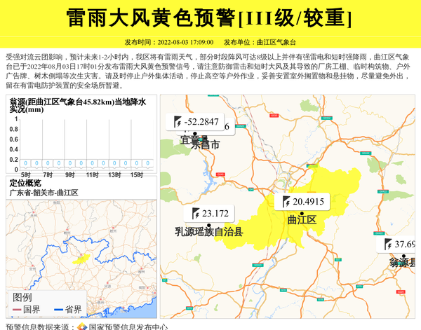 曲江区气象台发布雷雨大风黄色预警[III级/较重] 相关文章