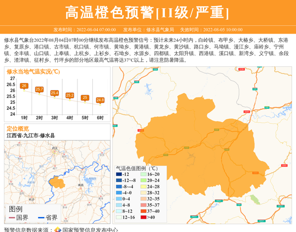 修水县气象台更新高温橙色预警[II级/严重] 相关文章