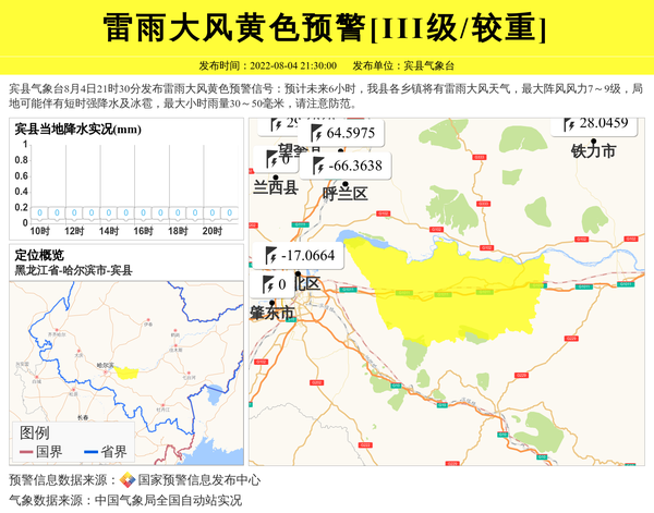 宾县气象台发布雷雨大风黄色预警[III级/较重] 相关文章