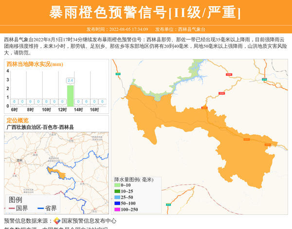 西林县气象台更新暴雨橙色预警信号[II级/严重]