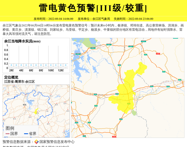 余江区气象台发布雷电黄色预警[III级/较重] 相关文章