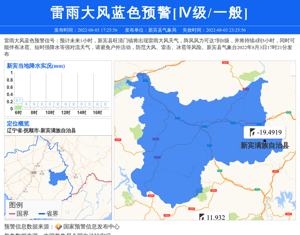 新宾县气象局发布雷雨大风蓝色预警[Ⅳ级/一般] 相关文章