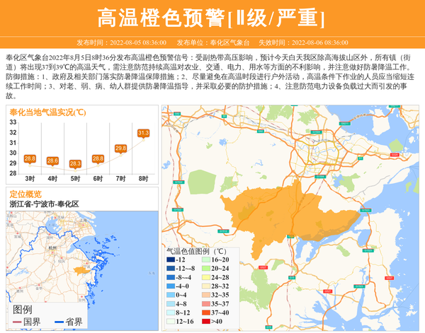 奉化区气象台发布高温橙色预警[Ⅱ级/严重] 相关文章