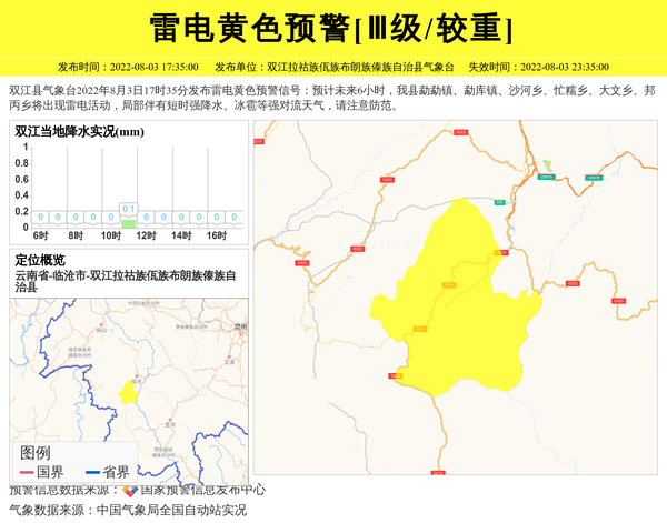双江拉祜族佤族布朗族傣族自治县气象台发布雷电黄色预警[Ⅲ级/较重] 相关文章