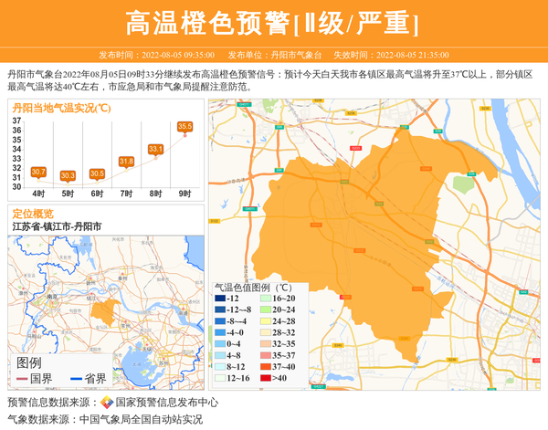 丹阳市气象台发布高温橙色预警[Ⅱ级/严重] 相关文章