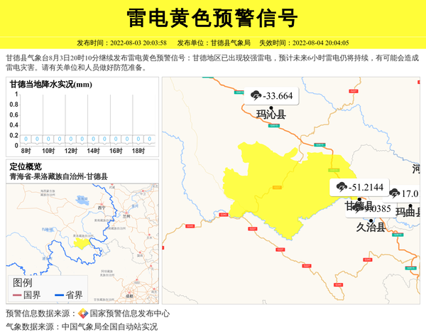 甘德县气象台确认雷电黄色预警信号 相关文章