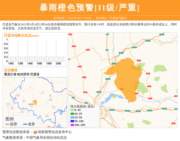 巴彦县气象台发布暴雨橙色预警[II级/严重] 相关文章