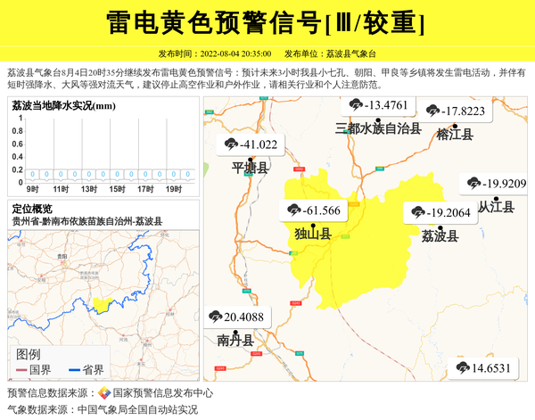 荔波县气象台继续发布雷电黄色预警信号[Ⅲ/较重] 相关文章